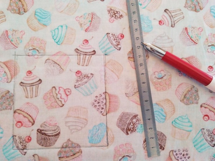 Tracez des carrés (ou autres formes si vous souhaitez) de 10*10 cm au crayon gris ou à la craie sur l’envers de votre tissu pour ne pas que cela se voit. Il ne vous reste qu’à les découper.