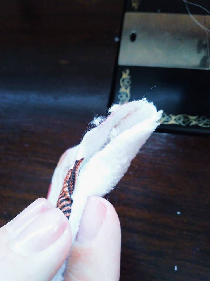 Pour cela, munissez-vous du fil de votre choix (moi je le double pour plus de tenue) et d’une aiguille et effectuez une petite couture pour refermer l’ouverture sans que cela n’y paraisse !