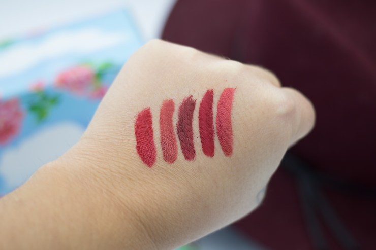 Pour chaque sélection, j’ai choisi de prendre cinq rouges à lèvres dont quatre au fini mat standard et un au fini mat métallisé.