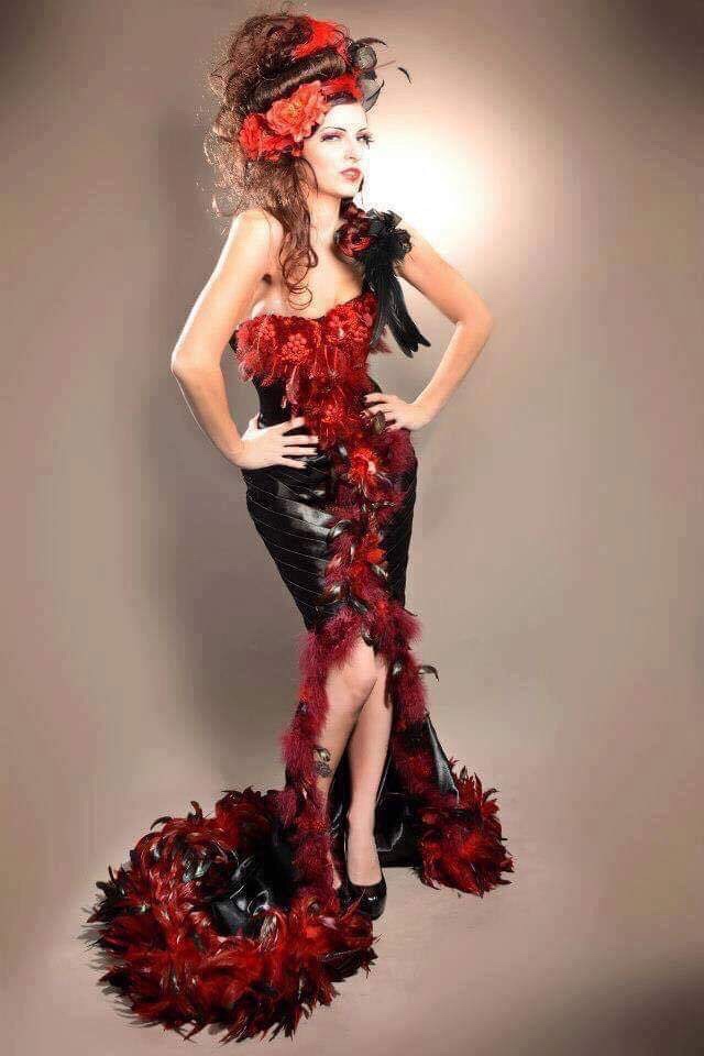 C’est donc Kat, deuxième dauphine de Miss pin up Bretagne qui a pris contact la première. « Nous sommes parties sur une robe de soirée glamour, femme fatale. Un joli tissu effet dentelle noire sur fond argenté pour la base, agrémenté de tulle brodée noire et fil argenté pour le bas et les épaules ». Près du corps, cette création scintille sous les projecteurs et sa traîne pose délicatement sur le sol.