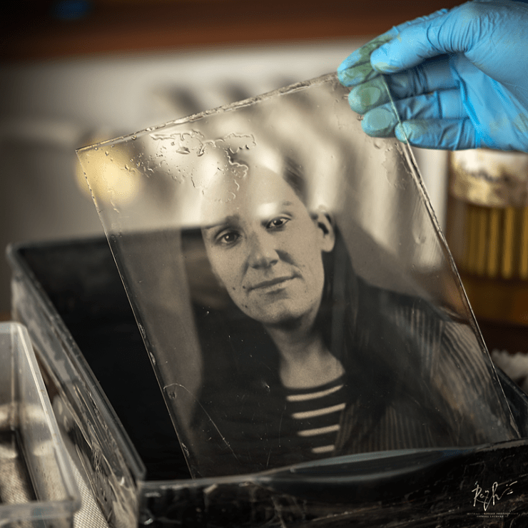Ma démarche pourrait se résumer en un mot : l’authenticité. L’ambrotype est un procédé de 1854 qui permet de faire des « photographies » dans le sens premier du terme : chaque photographie est unique, prise directement sur plaque de verre.