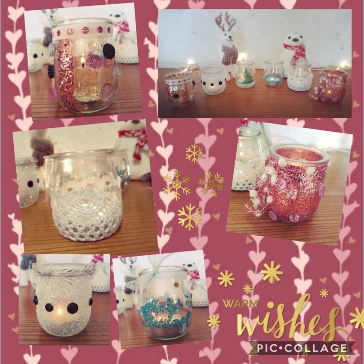 Aujourd’hui, je ne vais pas vous faire un tuto à proprement parler mais plutôt essayer de vous donner quelques idées pour décorer facilement de vieux pots de yaourt en verre afin d’en faire de jolis photophores pour les fêtes. Et une seule idée en tête : occuper vos petits loups en attendant le vieux barbu !