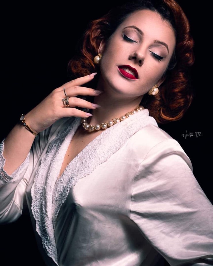 À mes débuts, j’avais un look plus pin-up qu’aujourd’hui, avec beaucoup de couleurs et des coiffures plus exubérantes les unes que les autres. Puis avec les années mon style a évolué. En effet, j’ai commencé à travailler sur les marchés vintage avec un stand me permettant ainsi de renouveler ma garde-robe avec des tenues des années 80 plus inspirées années 40 et 50. Depuis quelques mois grâce à certaines de mes rencontres notamment parisiennes, je tends à m’acheter des vêtements de plus en plus anciens et à travailler davantage mon style pour le combiner avec mes goûts qui évoluent avec l’âge. Tous les jours je crée de nouveaux looks, de nouveaux mélanges tout en travaillant mon maquillage et ma coiffure.