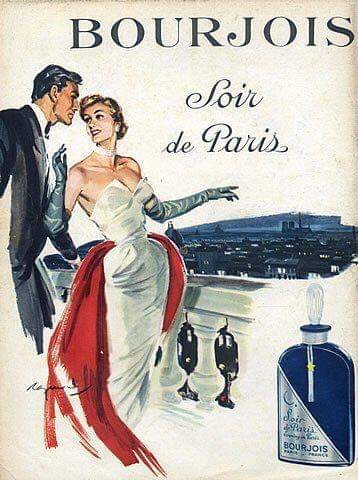 La fragrance ambrée, fleurie et épicée de Soir de Paris, composée par Ernest Beaux (interro surprise ! Si vous avez été attentif lors de la lecture de l’article traitant de Chanel n 5 ce nom ne vous est pas inconnu !), se love dans un flacon bleu nuit que les collectionneurs s’arrachent aujourd’hui, j’en fait partie. Aux états-Unis, elle est baptisée « Evening in Paris » et remporte un immense succès. Avec Soir de Paris, le luxe de la bourgeoisie devient accessible aux classes moyennes qui se développent dans les années 1930.