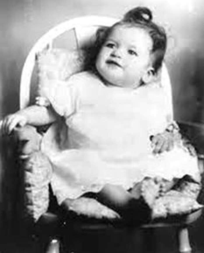 Vera Jayne Palmer, fille unique d’Herbert et de Vera William, vit le jour le 19 avril 1933, à Bryn Mawr, en Pennsylvanie. Un beau bébé de… 4,5 kg ! Sa jeune existence fut marquée par un drame indélébile dès l’âge de 3 ans. Herbert, qui était avocat, mourut d’une crise cardiaque à 32 ans alors qu’il était au volant, accompagné de sa femme et de leur petite fille.