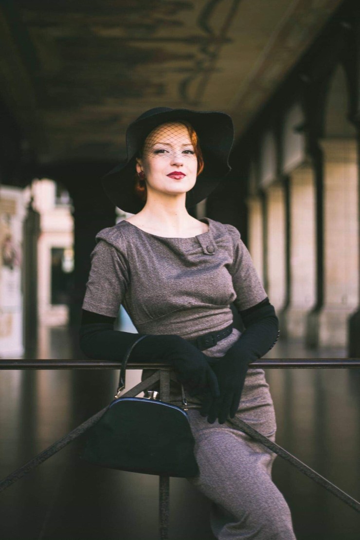 Je m’inspire souvent des actrices hollywoodiennes de la fin des années 40 jusqu’au début des années 60, pour n’en citer que quelques unes; Rita Hayworth, Marilyn, Jayne Mansfield et autres « bombshells ». Mon style reste assez classique avec peu d’accessoires, je mets en général l’accent sur la silhouette avec des soutien-gorges obus et des jupes très droites bien serrées à la taille. Jamais de tissus en jean, fleuri ou à pois, en revanche je suis une inconditionnelle des motifs en pieds de poule, tweed et tous les autres effets « tissés ».