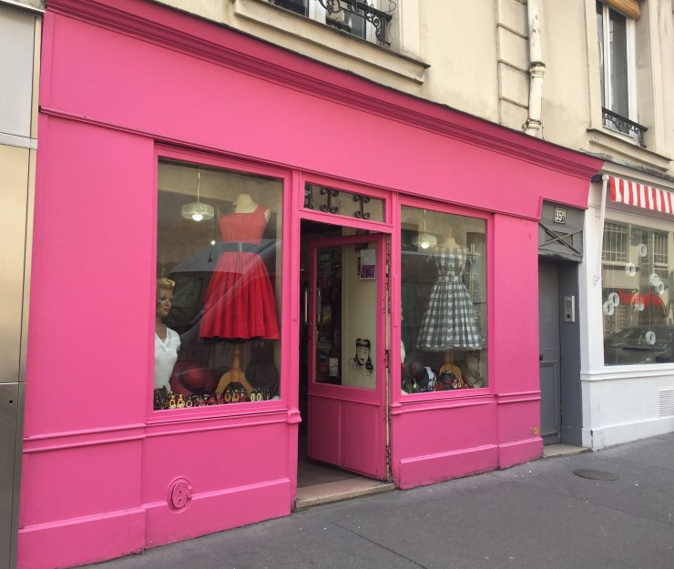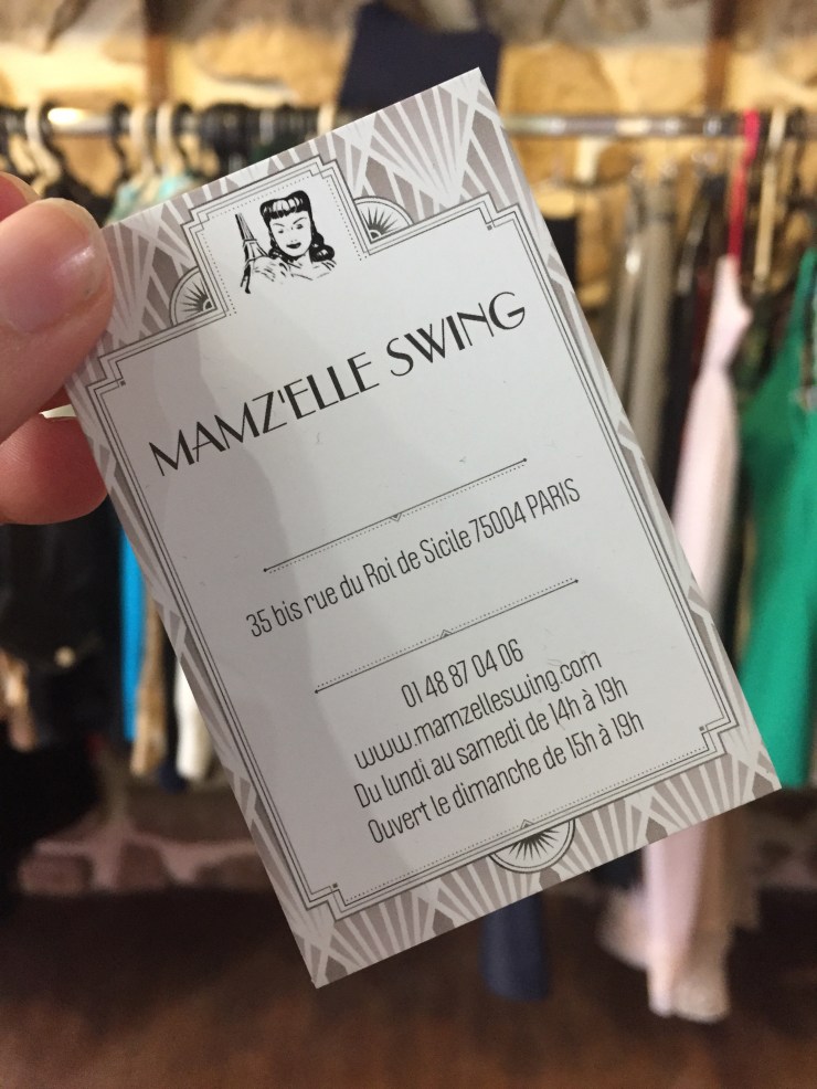 Il y a à Paris de jolies boutiques à l’ambiance délicieusement rétro qui vous donnent l’impression de remonter le temps, parmi elles « Mamz’elle Swing ». Imaginez, à quelques pas de l’hôtel de ville, une petite boutique à la devanture rose bonbon, en vitrine de superbes robes, des chapeaux, des blouses en crêpe, des boucles d’oreilles, des accessoires…