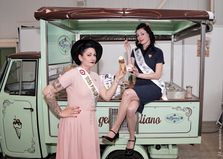 Je surveillais que le chauffeur ne se trompe pas de route. J’avais tellement hâte d’y être ! Ca faisait des semaines qu’avec les filles on papotait tous les jours du matin au soir et qu’on s’entraidait dans nos préparations. Quand on s’est rencontrées en réel j’avais l’impression qu’on se connaissait tellement que nous étions juste des copines qui se retrouvaient pour passer la journée ensemble. Tu ne sentais pas de compétition. La matinée s’est passée comme si j’étais avec mes copines à me préparer dans la salle de bain et choisir mes vêtements dans le dressing. On a complètement oublié qu’il y avait un concours. J’avais tellement oublié que je ne surveillais pas l’heure et que je me suis retrouvée la dernière à revenir dans les loges alors que j’étais la première à monter sur scène. Lorsque l’on s’est regroupées pour notre premier passage, j’ai bien senti mon cœur battre. C’était l’heure et on faisait moins les malines ! Une fois lancées on se dépêchait à se préparer pour pouvoir s’aider les unes les autres (quand je vous dis que c’était une ambiance de copines). Arrivée au moment du verdict les nerfs ont commencé à lâcher. On s’est notamment improvisé une petite danse de couple en coulisse avec Lylie Sweetviolet. Retour sur scène pour la dernière fois, je crois que c’est le moment où j’ai vraiment réalisé que j’étais à un concours, que le dénouement allait tomber et que la journée était finie. Lulu Pop Cherry est nommée 2ème dauphine et Miss Gwen Pupuce est nommée 1ère dauphine donc dans ma tête je suis déjà descendue de scène pour organiser le rangement, le chargement de la voiture et le retour. J’entends mon nom sans comprendre pourquoi jusqu’à ce que Miss Myosotys se mette face à moi pour me passer l’écharpe. Et là absence. J’ai suivi le mouvement en pleine confiance car une vague de demandes de photos et de félicitations nous tombait dessus jusqu’à ce que je ferme la porte de la loge. Toujours sans réaliser j’ai rangé mes affaires, pris les documents que l’on me donnait, écouté les premiers conseils en attendant le briefing et nous sommes rentrés. Je comprenais qu’il m’arrivait quelque chose mais j’étais tellement sous le choc que je ne réalisais pas quoi. J’étais tellement épuisée que je n’ai même pas fêté l’élection. Hop directement au lit !