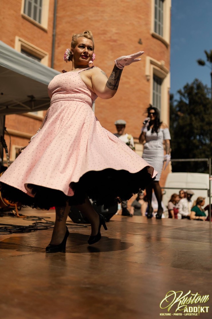 L’un des moments forts, c’est pendant que nous nous préparions, la troupe de Pin Up Vintage Association est arrivée dans les loges. J’ai été super émue qu’elles viennent faire des shows pour nous laisser le temps de nous changer et nous soutenir.