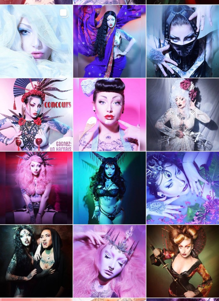 Je suis photographe (spécialisée dans la photothérapie et le relooking), maquilleuse/coiffeuse, créatrice de bijoux Coiffes et costumes, performeuse burlesque (spécialisée dans la danse orientale et le fakir), pour finir modèle.