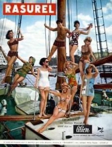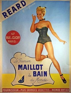 Les créateurs de maillots de bain américains les plus connus des années 1950 étaient notamment Clair McCardell, Tina Leser, Tom Brigance et Carolyn Schurer. Les marques les plus populaires : Cole of California, Jantzen, Rose Marie Reid, Elizabeth Stewart et BVD Certains catalogues comme Sears et Montgomery Ward avaient également leurs propres lignes de maillots de bain, même si il s’agissait de petites gammes (si vous voyez l’une de ces marques sur l’étiquette de votre prochaine trouvaille vintage, ne vous posez ps de question, achetez-la moi). En France nous restons un peu sur la réserve, le maillot s’exporte essentiellement des Etats Unis ou est confectionné à partir de patrons. Seule quelques marques de lingerie ou Haute Couture proposent de petites collections comme Rasurel, Valisère, La Sirène ou encore les célèbres Lejaby ou Rochas.