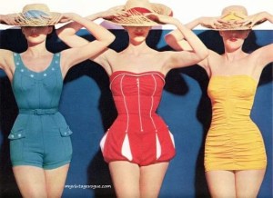 Après avoir évoqué la partie historique du maillot de bain, je vous parle aujourd’hui des styles en vogue dans les années 50 !