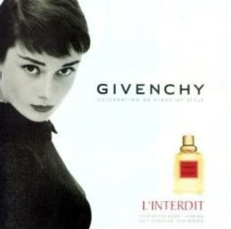 Et le parfum dans tout ça ? Une muse peut laisser plus qu’un style mais aussi une empreinte olfactive. Hubert ne se consacre qu’à la couture, mais l’année 1953 est déterminante. Entre dans sa vie Balenciaga, il devient son ami et mentor, l’illustre couturier espagnol lui rend visite quotidiennement afin de comparer leurs esquisses, allant même jusqu’à exercer des critiques qui se veulent constructives. C’est également sur ses conseils que le disciple, Hubert de Givenchy, développe les licences, notamment dans la parfumerie : « Cela assurera votre retraite » lui dit le « Maître ». En 1958, il lance son parfum L’interdit, dédié à sa muse Audrey Hepburn. Elle devient alors la toute première célébrité à poser pour une campagne publicitaire, et sans doute la dernière à le faire gracieusement, uniquement par amitié.