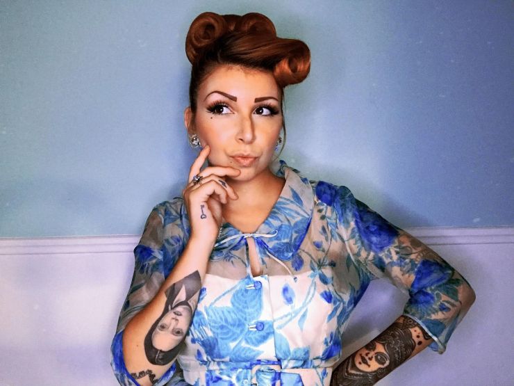 L’astuce principale que j’ai utilisée pour vaincre ma peur a été d’y aller à mon rythme. Il n’y a aucune obligation à commencer avec un look intense de la tête au pied !J’ai donc intégré petit à petit des éléments à mon style afin de m’habituer graduellement aux commentaires et réactions des gens. De mon côté, ce qui m’effrayait le plus, c’était les coiffures. J’ai donc commencé par porter des robes vintage, plus tard des accessoires assortis, ensuite j’ai ajouté le maquillage et j’ai terminé par ce que je redoutais le plus, les coiffures vintage ! Tout ce périple a duré environ 2 ans. Aujourd’hui, j’assume entièrement et me sens à l’aise dans mon style !