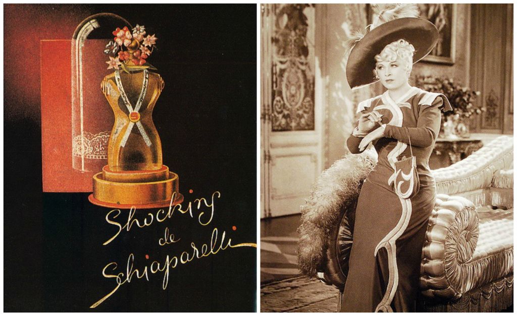En 1931, elle imagine la jupe-culotte, qui fait scandale en Angleterre et abuse des couleurs vives, dont son fameux rose, qu’elle baptisera le « rose shocking » ou ‘’rose choquant’’, qui deviendra sa signature telle qu’on la connait. On peut dire que Shocking est l’équivalent de Schiaparelli du New Look pour Dior. Mais c’est le parfum Shocking, inspiré de sa rencontre avec Mae West qui fait d’elle une femme vraiment riche et célèbre ! En effet, le parfum devient immédiatement un best-seller, tout comme une robe basée sur celui-ci, qui avait des poches d’air à l’intérieur du corsage qui pouvaient être gonflées pour créer le buste de West. C’est décidément la collection Shocking qui fera d’Elsa Schiaparelli la figure de proue de la mode de cet époque.
