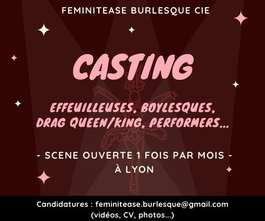 C’est un atelier assez exceptionnel que vous propose “Burlesque & Vilaines”, association rennaise pailletto-culottée. Tarif : 30€. Inscriptions en ligne ici