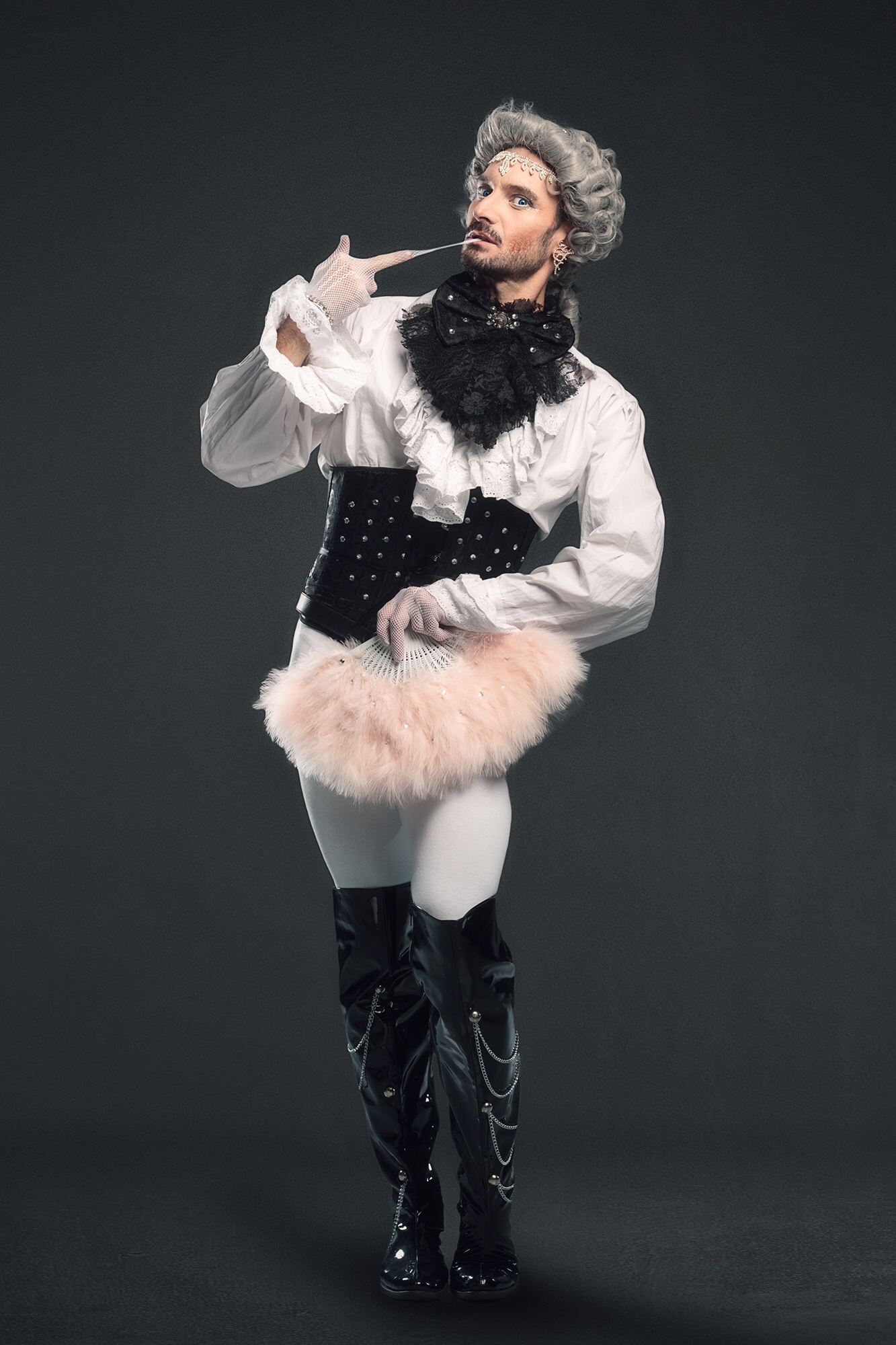 Vicomte Harbourg a commencé le burlesque avec La Flaque. Avec 28 ans de danse classique dans les pattes, il s’en inspire beaucoup pour créer ses premiers numéros tout en explorant l’art scénique et le chant.