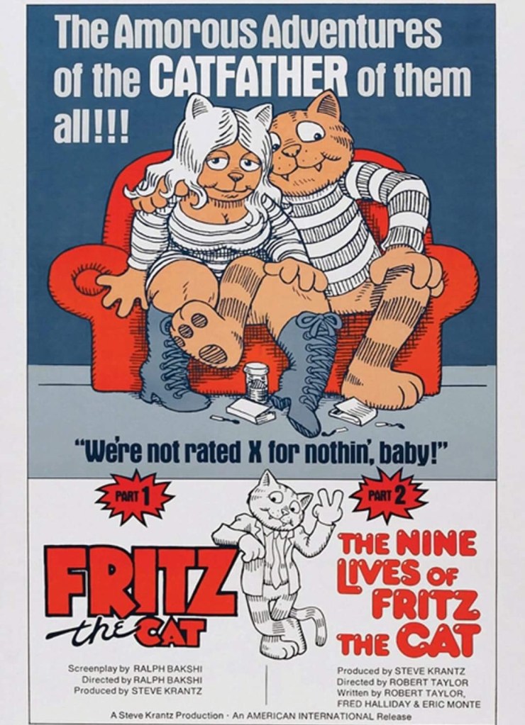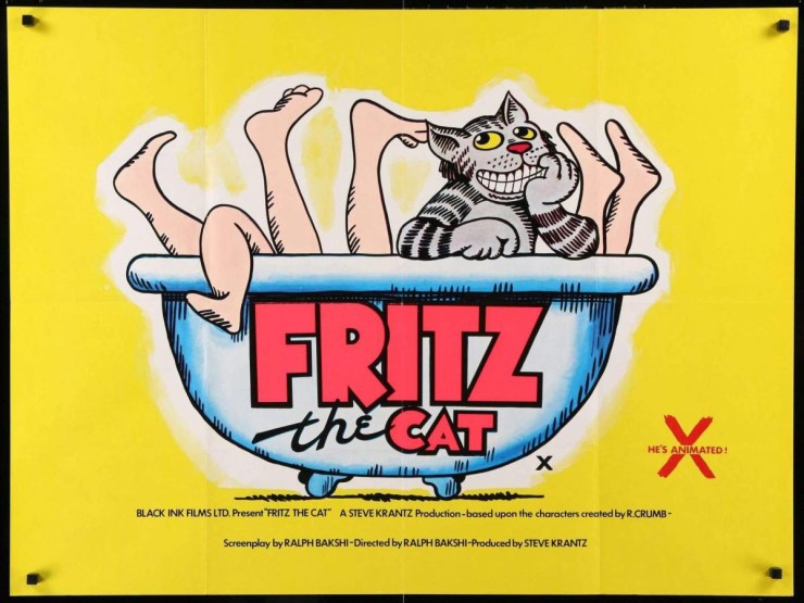 En 1972, le réalisateur Ralph Bakshi, décide d’en faire le héros d’un dessin animé classé X. Une hérésie, une trahison pour le père de Fritz. Il sort donc un dernier opus où fritz meurt sous les coups de pic à glace d’une conquête Autruche sans avoir pu profiter de son charme irrésistible !