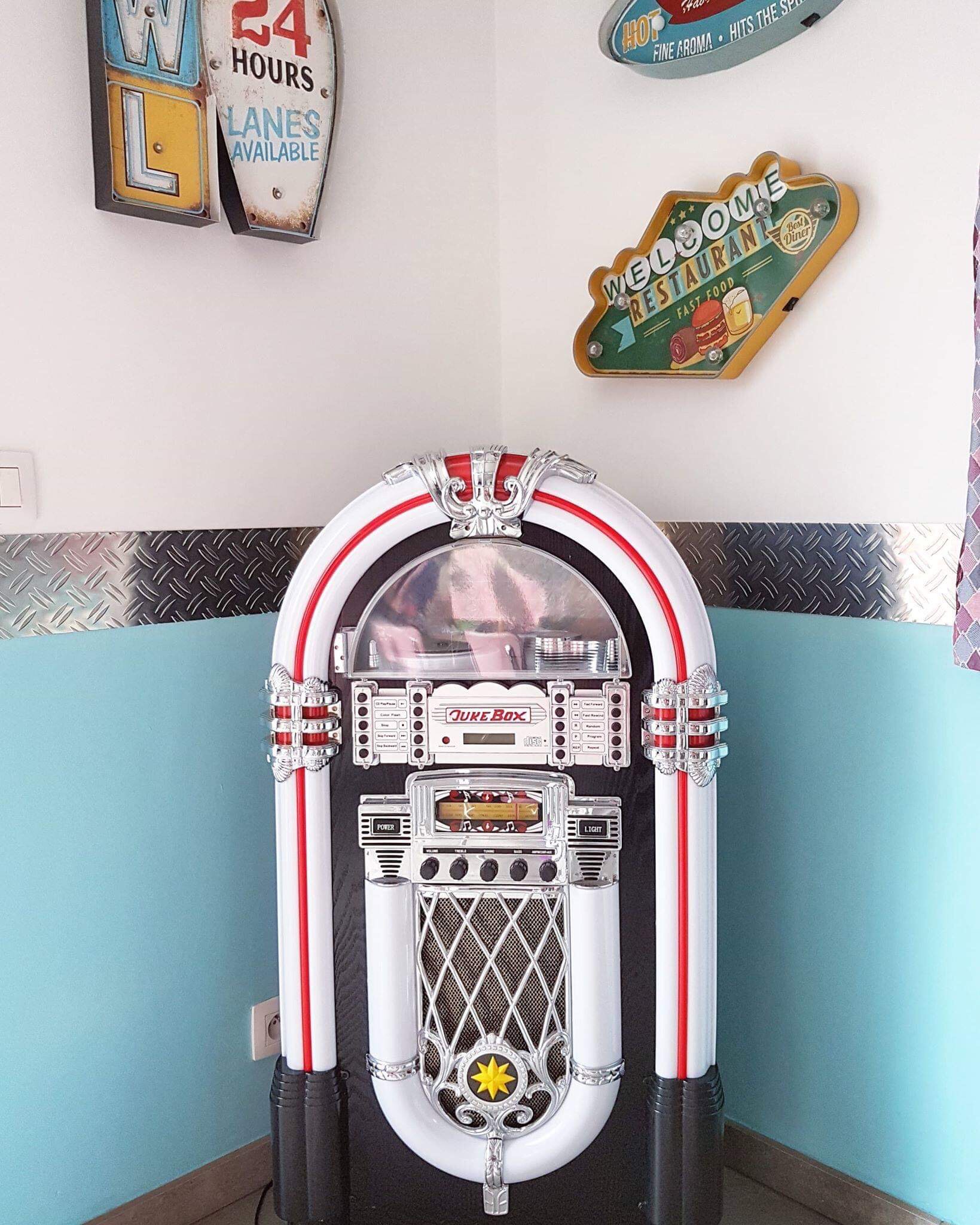 Eh bien, c’est tout bête, mais j’étais en train de manger dans un diner à La Rochelle et en regardant autour de moi, j’ai fait « Wahou, mais c’est ça que je veux ! ». C’était il y a environ 3 ans, ma maison n’était alors qu’un croquis, mais j’avais la certitude qu’elle aurait une allure rétro ou rien du tout !