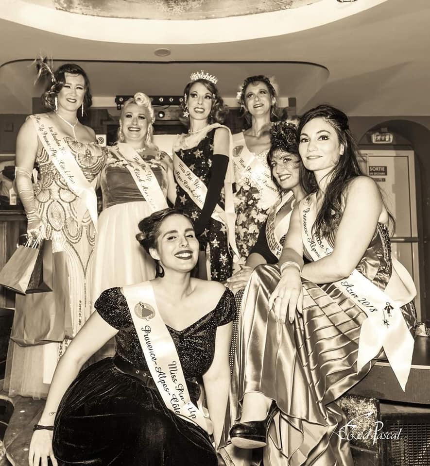 Au dessus, de gauche à droite: Lady Alba (1ère dauphine Miss pin-up PACA 2020)