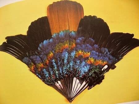 Les plumes de fantaisie étaient montées soit à plat, sur les brins constituant l’éventail, soit collées sur des plumes de basse-cour.