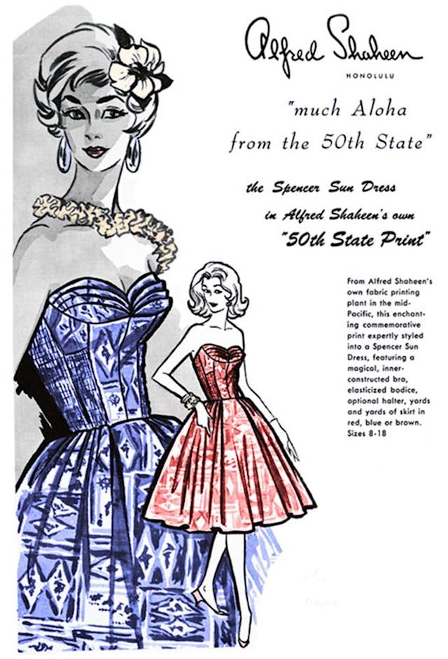 Après la guerre, Alfred rentra à Hawaii. Il travailla quelques années à l’entreprise familiale avant de fonder sa propre marque (une tradition familiale) en 1948. Alfred Shaheen choisit de se spécialiser dans les chemises pour hommes et la mode féminine prête-à-porter. À ses débuts, son entreprise fait affaire depuis la maison familiale, avec quatre couturières formées par sa mère. Les tissus employés dans la création des vêtements étaient à l’époque tous importés du continent, mais une grève des ouvriers de quais vers la fin des années ’40 combinée à la guerre de Corée obligea ce cher Alfred à faire preuve d’ingéniosité.