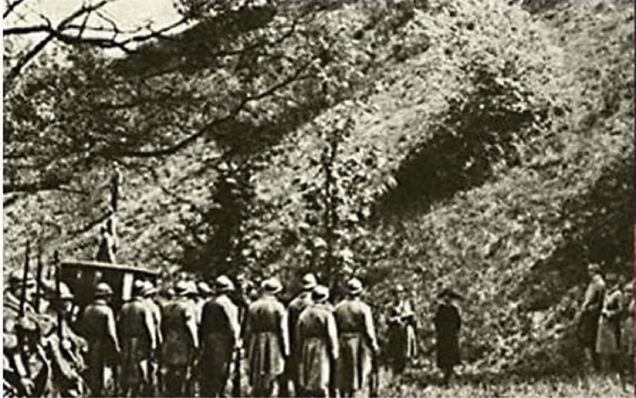 Mata Hari refuse gentiment qu’on lui attache les mains au poteau, et renvoie l’homme venu lui bander les yeux, elle veut tout voir dans un dernier élan de fierté ou de courage. Lui faisant face, douze soldats, le fusil à l’épaule.