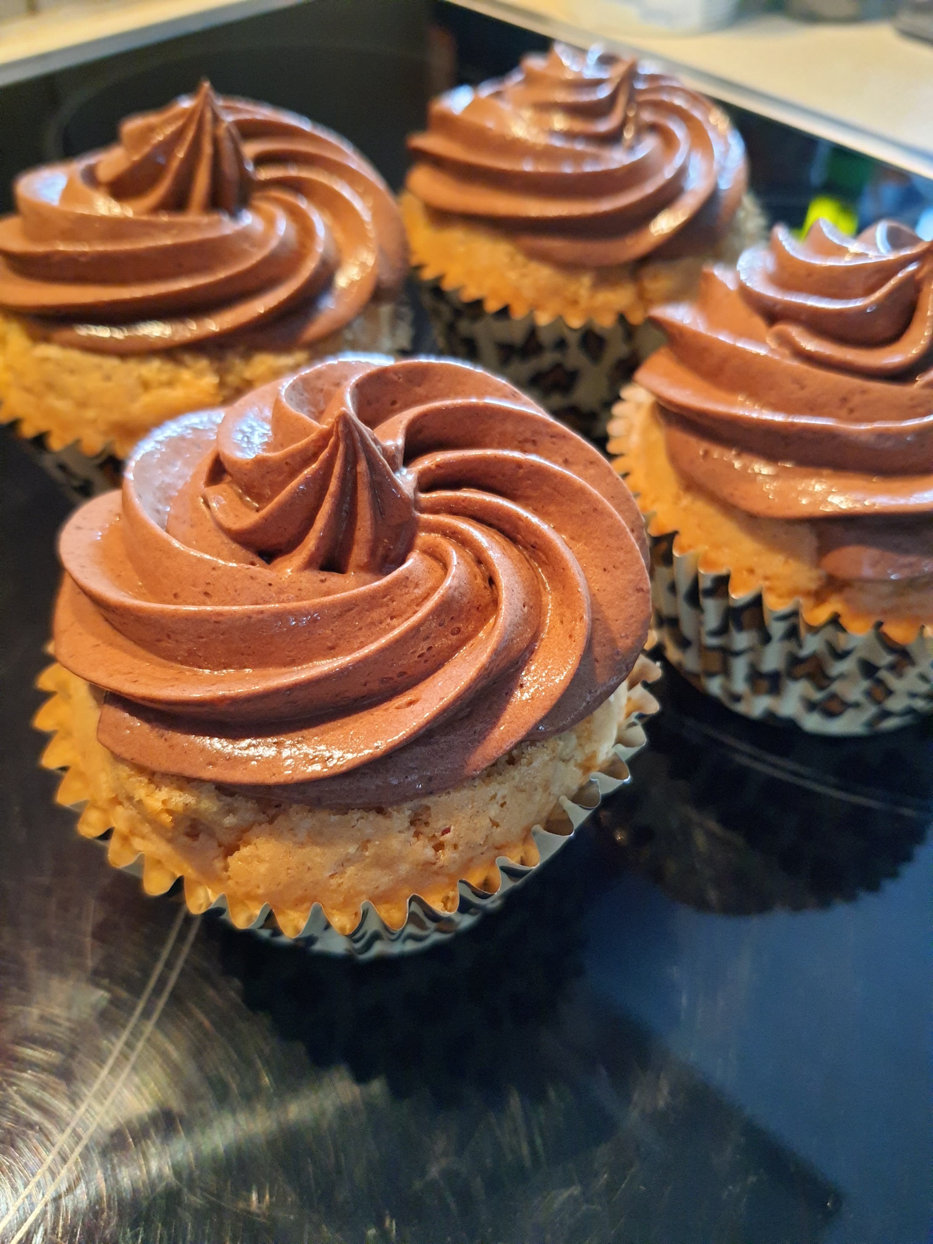 8. Mettez la crème dans une poche à douille munie d’une douille cannelée et décorez vos cupcakes refroidis.